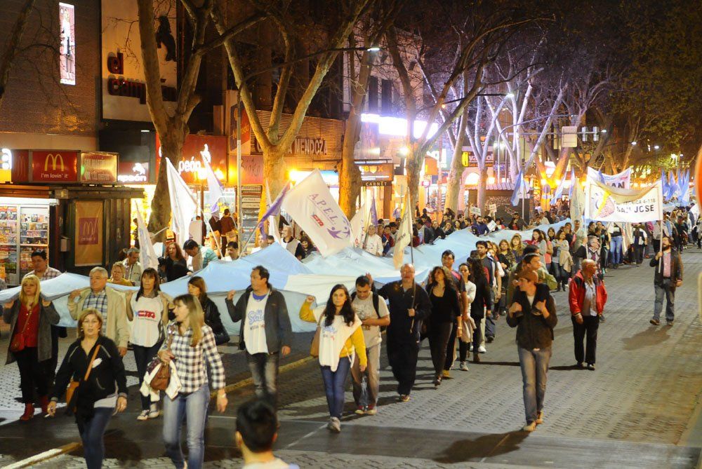 Aproximadamente 2.000 docentes se concentraron en la intersección de Godoy Cruz y Patricias Mendocinas cerca de las 19 para arrancar con la movilización por calle San Martín hasta Casa de Gobierno.