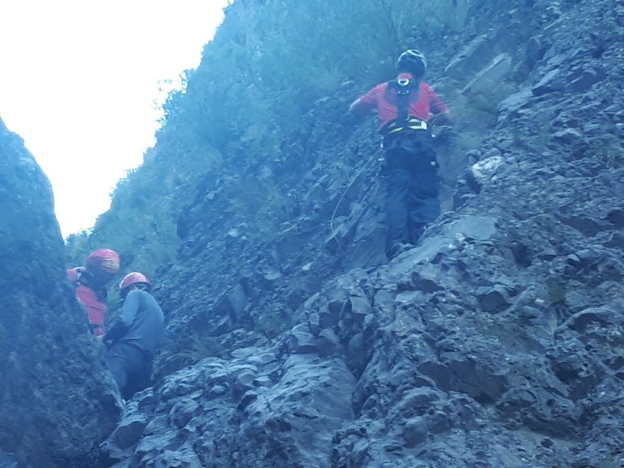 Lo hallaron en una zona de saltos donde había quedado enriscado. El hombre tenía mucha sed, por lo que lo hidrataron y comenzaron las tareas para sacarlo de allí.