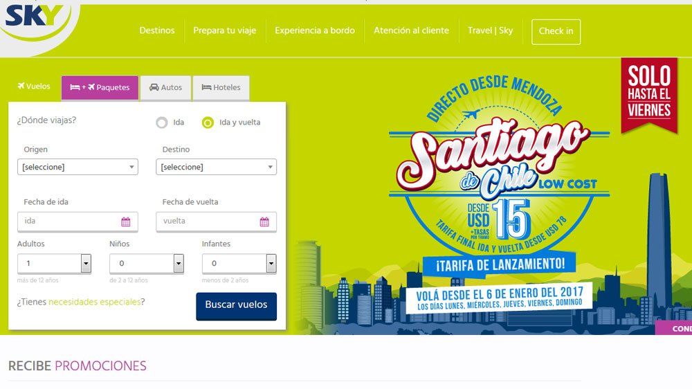 Los pasajes ya pueden adquirirse en www.skyairline.com a una tarifa de lanzamiento de US$15 por tramo (Santiago-Mendoza o Mendoza-Santiago), más tasas de embarque, la que estará disponible hasta el hasta el 9 de septiembre y para volar entre el 6 de enero y el 31 de marzo de 2017.