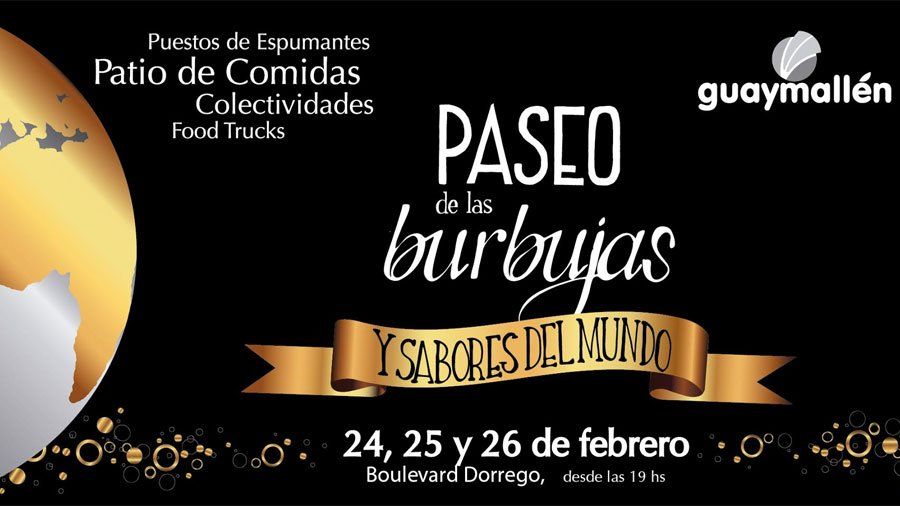 Ya está todo preparado para la realización de "Paseo de las Burbujas y Sabores del Mundo", un nuevo encuentro que combinará lo mejor de la producción vitivinícola local y la gastronomía internacional. Será a partir de las 19, los días viernes 24, sábado 25 y domingo 26, en el Boulevard Dorrego y habrá espectáculos artísticos.