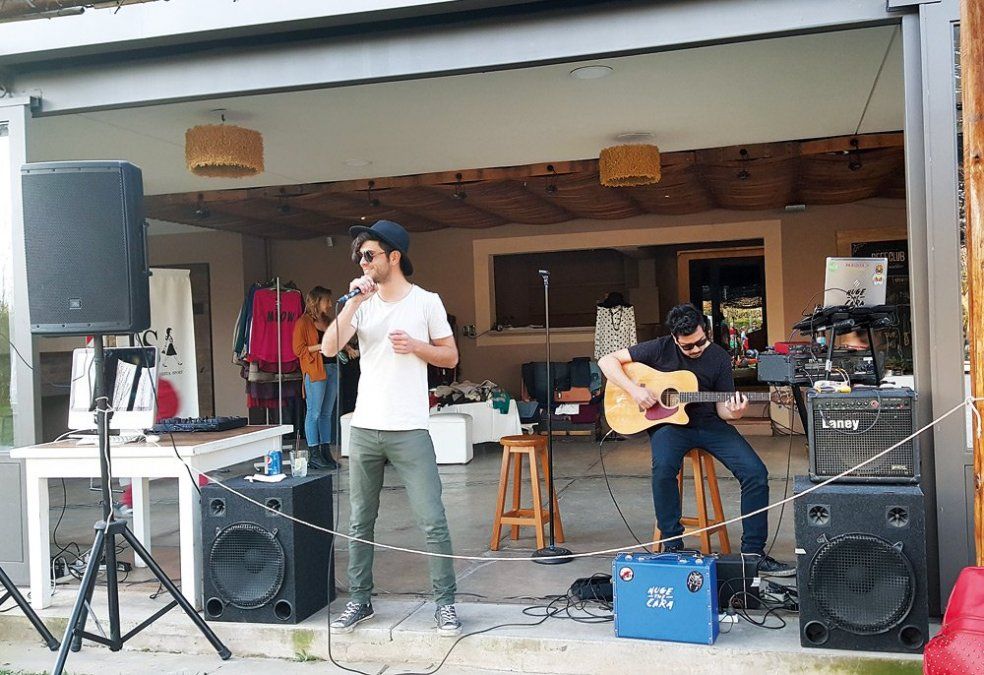Para levantar la tarde del domingo, el toque en vivo de Huge The Cara, la banda mendocina de indie-funk-dance, sonó en los jardines del lugar.
