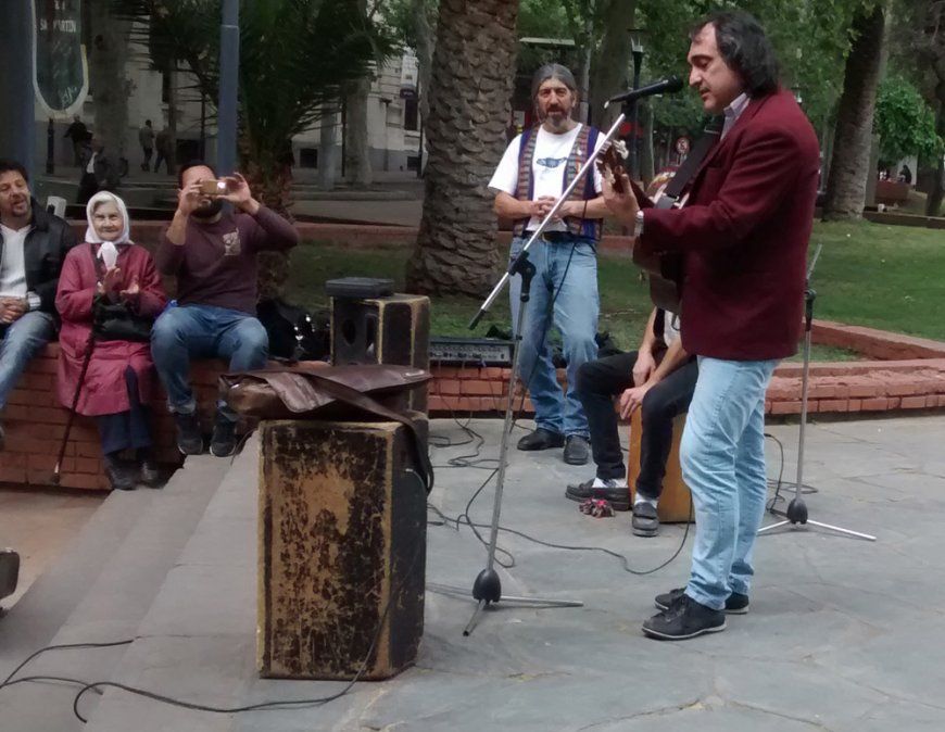 El músico y abogado mendocino Marcelo López pasaba por la plaza San Martín en pleno centro de Mendoza y se encontró con la tradicional marcha de las Madres.