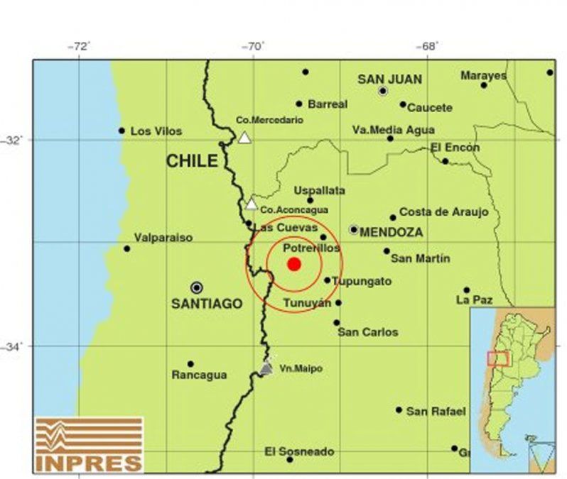 Un fuerte movimiento sísmico tuvo lugar en la noche de este jueves en Mendoza.Según informó el INPRES, a las 21.52 el temblor alcanzó los 5.5° de magnitud en la escala de Richter.Su epicentro se localizó a unos 75 kilómetros al sudoeste de la Ciudad de Mendoza, entre Tupungato y Potrerillos.Se trató de un episodio bastante superficial con sólo 10 kilómetros de profundidad.