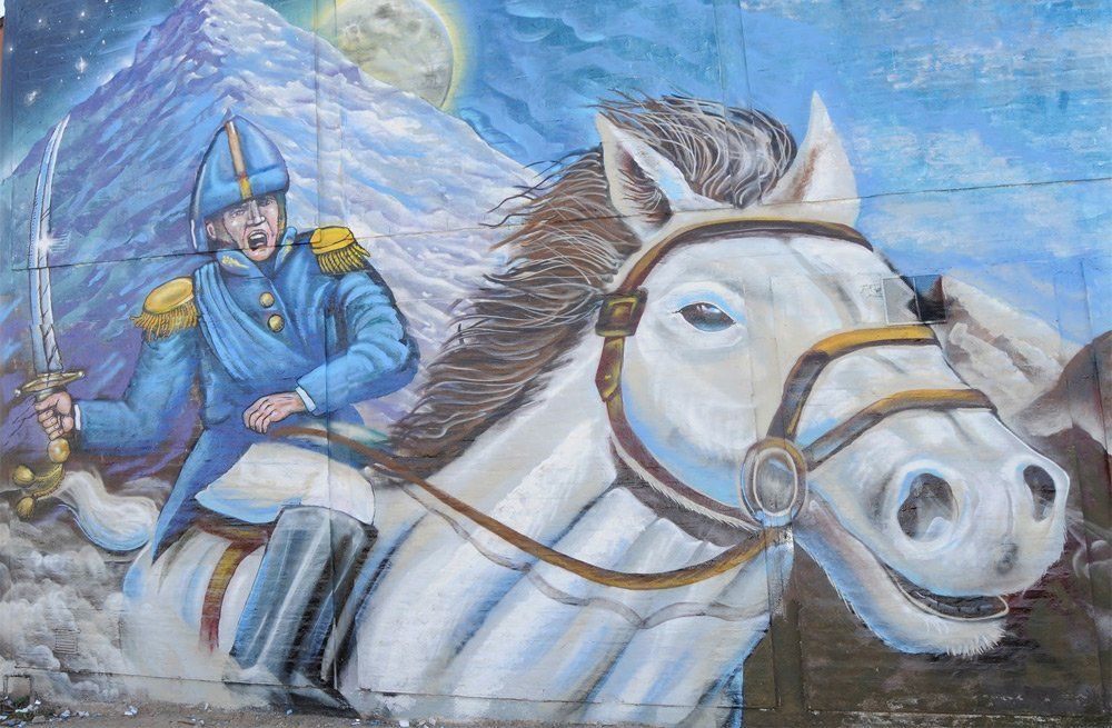 Dicha obra, que luce ahora en el barrio Pablo VI, la realizó el grupo de muralismo Artehaga de Chile, y en la misma se ilustra la hazaña del cruce de Los Andes, dejando así de manifiesto la valentía y la estrategia del Padre de la Patria.