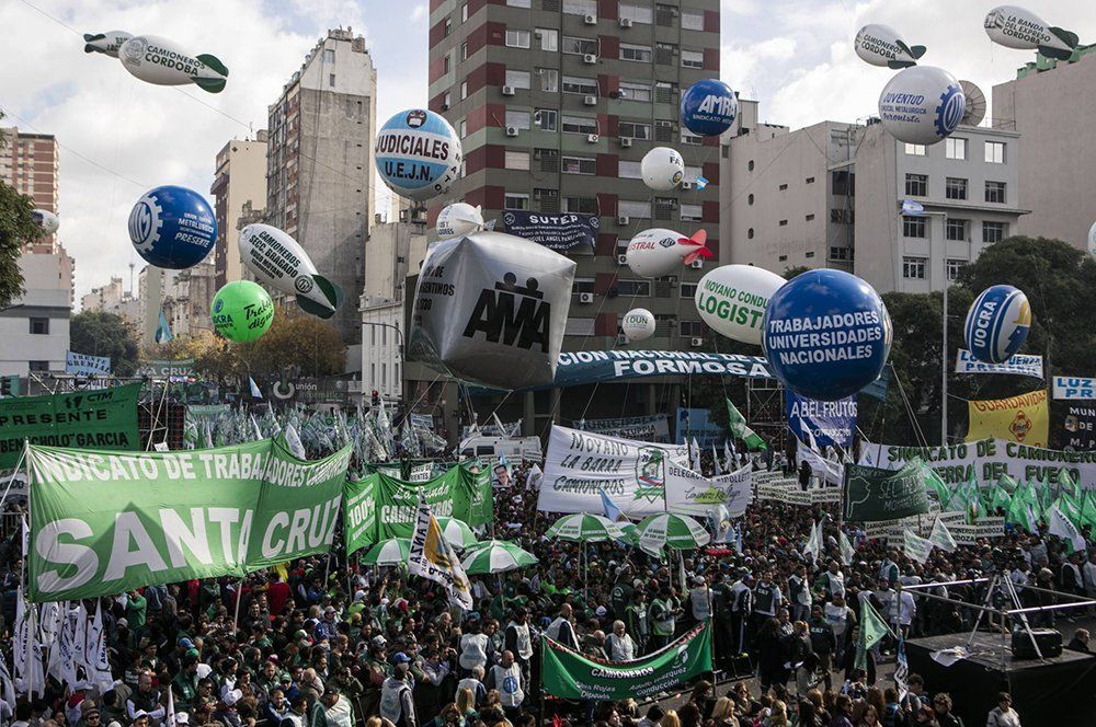 Una masiva movilización que respondió al la convocatoria de las cinco centrales obreras de Argentina, se realizó este viernes para reclamar contra los ajustes, despidos, impuesto a las ganancias y la inflación.