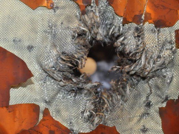 Esos restos, resultados de la actividad humana en el espacio, pueden parecer aparentemente inofensivos, pero se convierten en proyectiles mortales cuando empiezan a orbital en torno a la Tierra a velocidades que oscilan entre los 10 y los 20 kilómetros por segundo. La imagen de arriba, por ejemplo, es el resultado de la colisión de una pieza de 7,5 milímetros viajando a 7 km/s. Este es otro buen ejemplo: