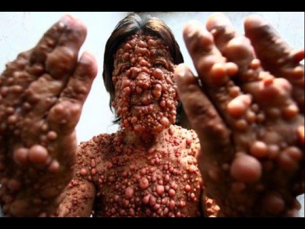 Le dijeron que la condición era genética y puede ser causada por una anormalidad en el sistema nervioso que causa tumores benignos, que se desarrollan en la piel o el hueso.