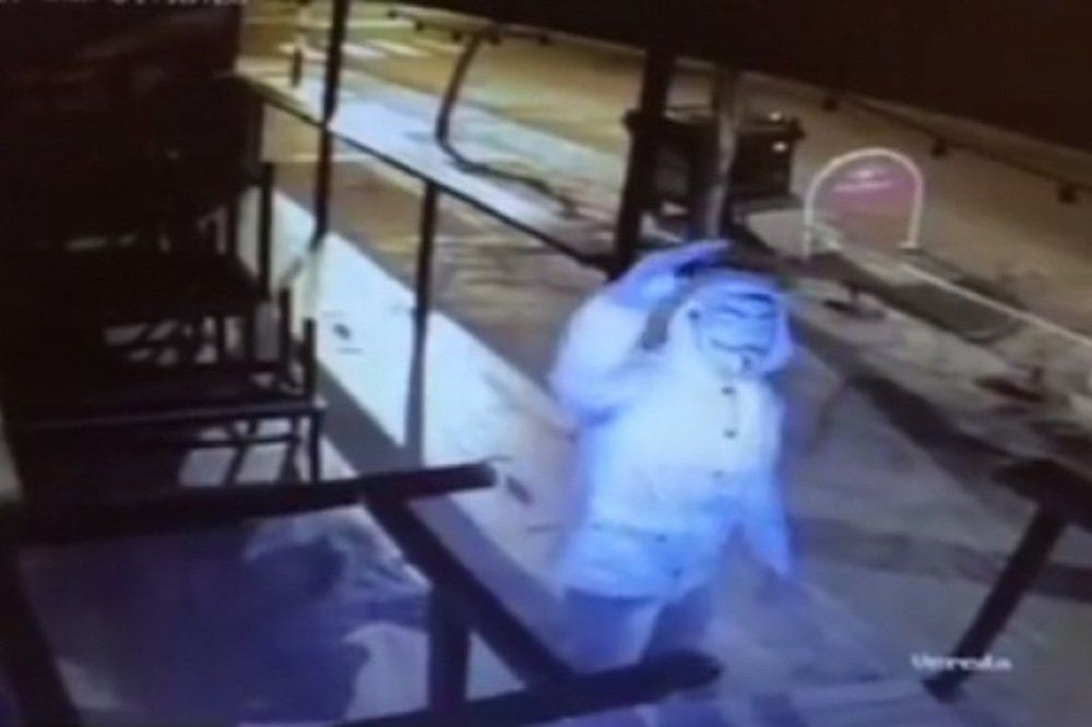 La respuesta del ladrón no tardó en llegar, ya que al día siguiente, cubierto con una máscara de Guy Fawkes (V de Vendetta, anonymous en la actualidad), regresó al bar, devolvió el objeto robado y hasta saludó a la cámara.