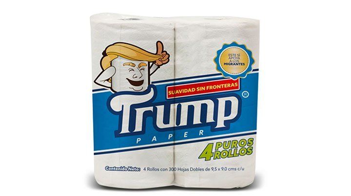 El abogado Antonio Battaglia se apresta a sacar al mercado un papel higiénico marca "Trump", que publicita con slogans como "Suavidad sin fronteras" y "Este es el muro que sí vamos a pagar".