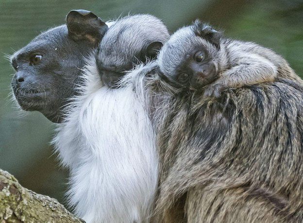 La foto del día. Mamá sillón. Estos monos titís cabeza blanca (o tamarinos) descubrieron que no hay más confortable ni más cálido asiento que la espalda de su mamá, Lía, que vive con ellos en el zoológico en Erfurt, Alemania.