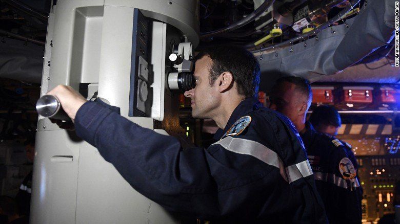 El presidente francés Emmanuel Macrón participó de un simulacro en el submarino Le Terrible. Descendió desde un helicóptero y pasó cuatro horas bajo el agua en la nave cargada con armas nucleares, en una muestra de apoyo a la flota del país.