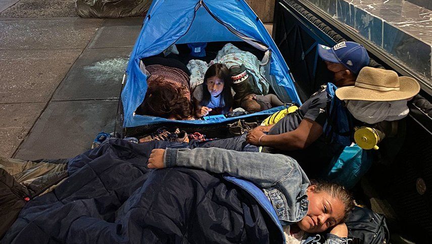 El acampe se organizó en la víspera de una manifestación en la que cientos de personas marcharon para presionar a las autoridades de Nueva York para que cobren impuestos a los ricos y ayudar a las familias con menos recursos afectadas por la pandemia.