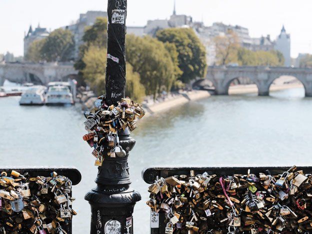 En junio pasado, unos 2,40 metros de la baranda del Puente de las Artes, que atraviesa el Sena entre el Louvre y la Academia Francesa, se desmoronaron bajo el peso de los candados.