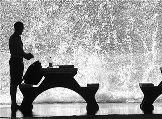 La foto del día. Recorte del agua. Andy Penn observa cómo una gran ola se estrella contra una pared en la Bahía de Hilo, en Hawai.