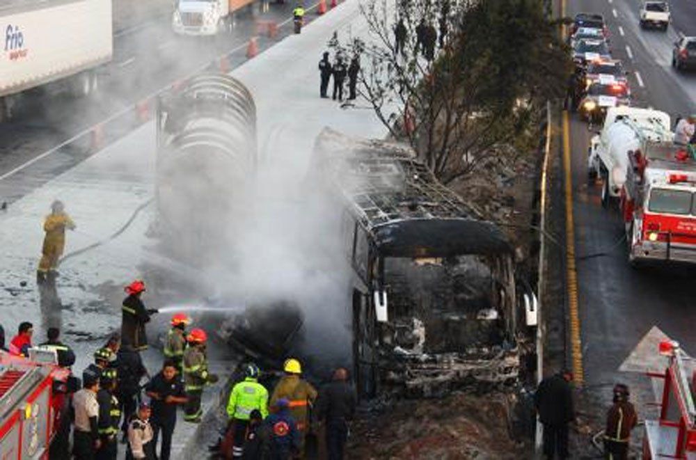 La muerte de al menos 24 personas en la colisión y posterior incendio de un autobús de pasajeros y un camión cargado de combustible ha enlutado México en plena Semana Santa, uno de los periodos vacacionales con mayor flujo de vehículos.El accidente, uno de los más graves de los últimos años en el país, se produjo sobre las 06.30 hora local en la conocida como autopista Siglo XXI, una vía de dos carriles, en los límites de los estados de Michoacán y Guerrero.El vocero de Seguridad de Guerrero, Roberto Álvarez, informó que el choque provocó la muerte de 24 personas y lesiones en otras 9 personas en el poblado de Feliciano, en el municipio de La Unión.El número de fallecidos no es definitivo, y la Asociación de Bomberos del Estado de Michoacán (ABEM), que trabaja en el lugar de los hechos, dijo a Efe que la cifra puede ascender a 29.El paisaje quedó completamente arrasado tras la colisión de ambos vehículos, que de acuerdo a los bomberos tuvo lugar cuando el tráiler, que traía dos remolques y unos 40.000 litros de gasolina, invadió el carril contrario e impactó de frente con el autobús de pasajeros.De acuerdo a los primeros reportes, el vehículo de pasajeros había sido alquilado por una familia de Morelia, capital de Michoacán, que se dirigía en grupo a pasar las vacaciones de Semana Santa a las playas del mismo estado del Pacífico mexicano.Los paramédicos, bomberos y rescatistas trasladaron a una veintena de lesionados a diversos hospitales de la región, y el siniestro causó el cierre de la autopista a solo cinco kilómetros del puerto de Lázaro Cárdenas, uno de los enclaves más importantes en esta región.Por la cifra preliminar de fallecidos y heridos, el incidente carretero se sitúa entre los más trágicos de estas características acontecidos en años recientes en México.El 20 de abril de 2012, la plataforma de un tráiler se desprendió de la unidad e impactó con un autobús en Veracruz, dejando 43 muertos y 27 heridos.Fuente: EFE