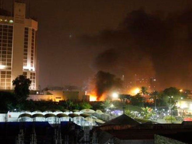 Al menos nueve personas murieron el jueves por la noche en la explosión de coches bomba ante dos lujosos hoteles de Bagdad (Irak), según un nuevo balance facilitado por las autoridades.Decenas de personas resultaron heridas en las explosiones, que se produjeron justo antes de la medianoche de ese país en los estacionamientos de los hoteles Ishtar (antiguo Sheraton) y Babilonia, donde las fuerzas de seguridad neutralizaron otro coche bomba, según la policía.