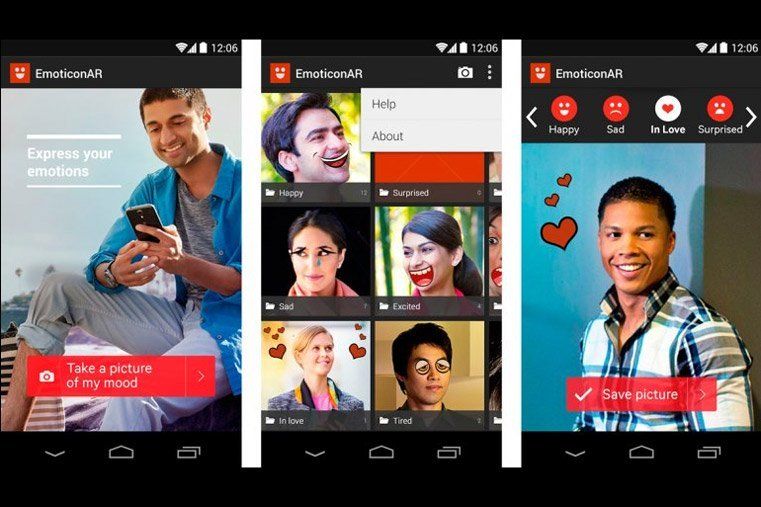"La app reconoce tus gestos en una foto y de forma automática coloca emoticones en el lugar correcto de tu cara", explicó la empresa sobre EmoticonAR, que basa su funcionamiento en la tecnología de reconocimiento facial de su familia de procesadores Snapdragon.