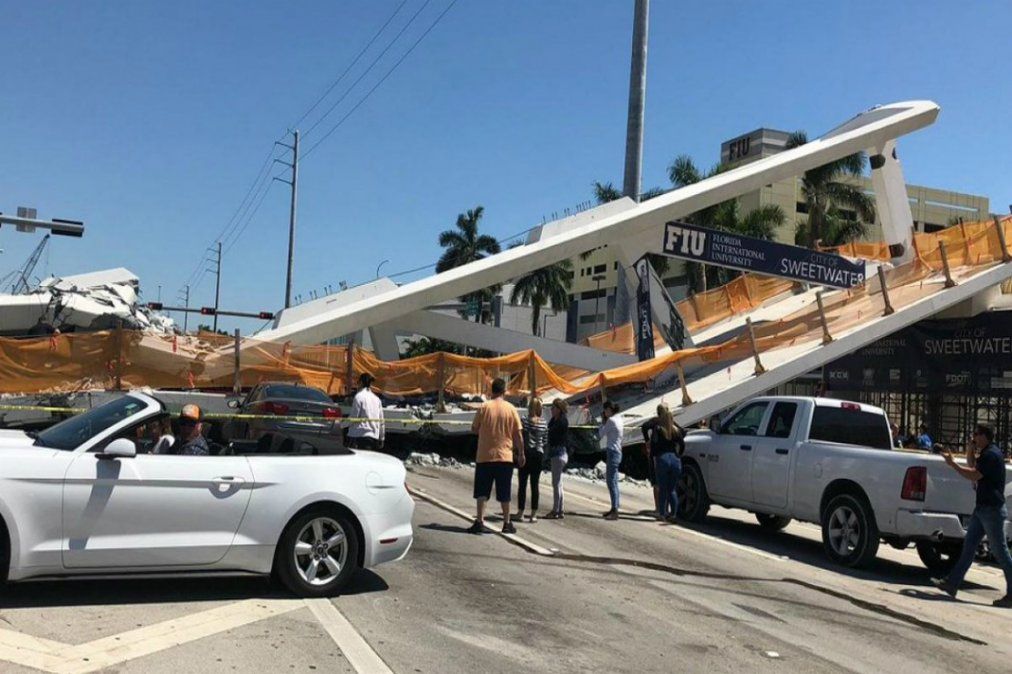 Este jueves se derrumbó una pasarela en el oeste del condado de Miami, Florida (EE.UU.), dprovocando un saldo de seis muertos y varios heridos. Fueron ocho los autos que quedaron bajo el puente cuando transitaban por la avenida en el momento del derrumbe.
