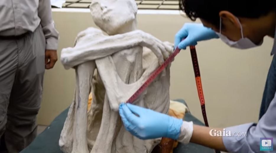 El cuerpo momificado mide 1,68 cm de alto, tiene proporciones similares a las de un humano, pero solo tiene tres dedos largos en cada mano. El cuerpo no tiene nariz, ni orejas. Por último, las pruebas de carbono habrían revelado que los restos datarían de entre 245 a 410 años después de Cristo.