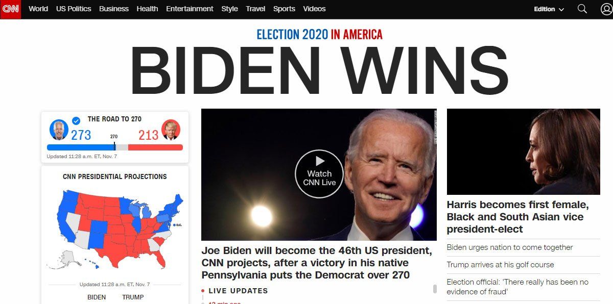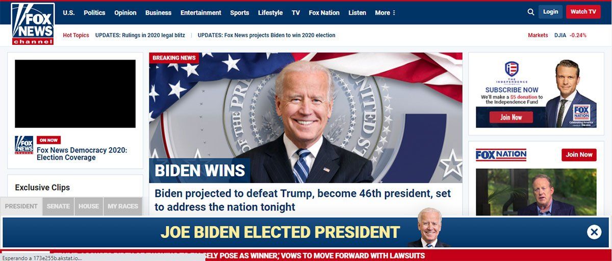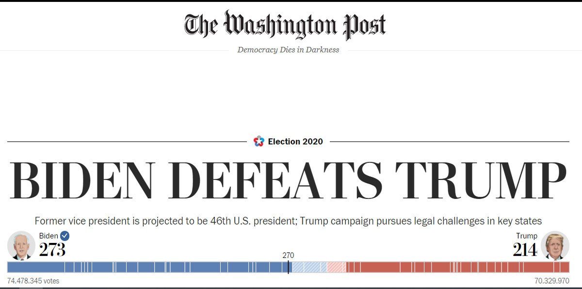 Cuando Pensilvania cerró el conteo, los medios estadounidense salieron a dar la noticia en consonancia. Incluso Fox News, la cadena de referencia de los republicanos, dio a Biden como presidente electo.