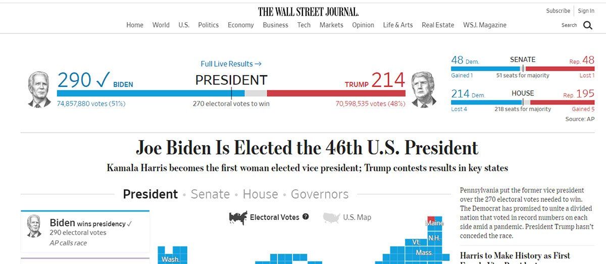 Con el cierre definitivo del conteo de votos de Arizona y Pensilvania, Joe Biden se convirtió en el presidente electo de Estados Unidos al conseguir 173 electores, un resultado irreversible para el candidato republicado Donald Trump. Se trató de una de las elecciones más reñidas y con mayor participación de la historia del país del norte.
