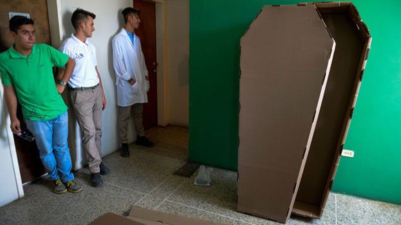 Ante estas dificultades del último adiós, Elio Angulo, un emprendedor de Barquisimeto (365 km al suroeste de la capital), apuesta por el "biocofre", una urna de cartón corrugado, 70% de producto reciclado, que diseñó con un socio y pronto sacará a la venta.
