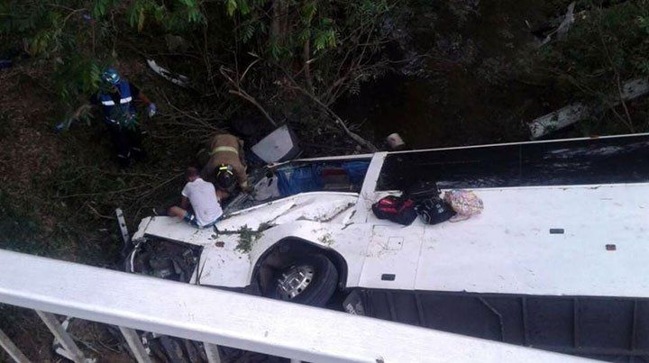 El director de la Defensa Civil dijo a los periodistas que tras el impacto una parte del autobús quedó dentro de la quebrada que pasa bajo el puente.