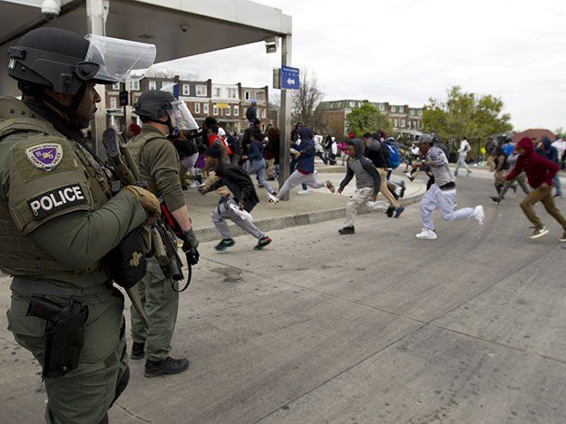 La ciudad estadounidense de Baltimore (este de EEUU) se convirtió este lunes en escenario de violentos conflictos callejeros luego del funeral de un joven negro que murió en circunstancias no aclaradas tras ser arrestado por la policía.De acuerdo con el capitán Eric Kowalczyk, de la policía de Baltimore, por lo menos siete agentes policiales resultaron heridos en los enfrentamientos de este lunes, que fueron reprimidos con vigor por el personal policial.