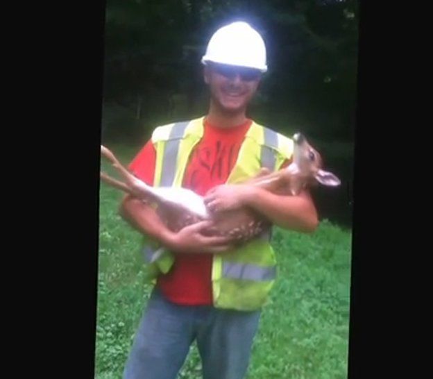 Justin Lewis, un trabajador de Kentucky, Estados Unidos, estaba junto a su compañero talando árboles cuando un pequeño ciervo quedó atrapado entre los troncos.