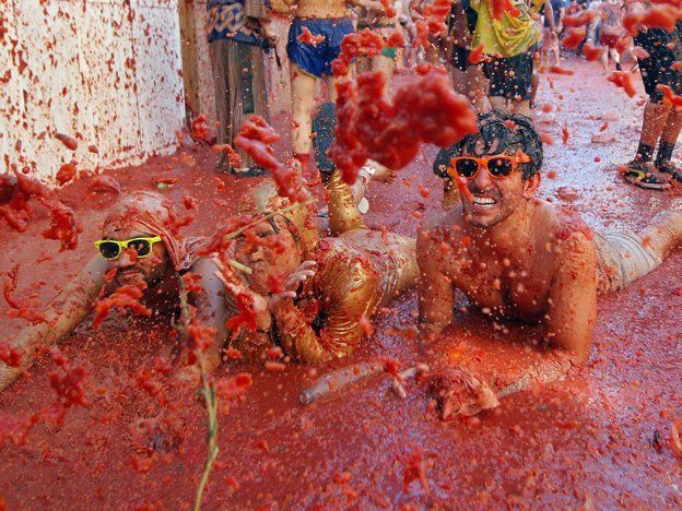 Más de 140.000 kilos de tomate y 22.000 personas dispuestas a lanzárselos. Con estos ingredientes, no es de extrañar que Buñol (Valencia) se haya convertido este miércoles en una gran piscina de salsa roja tras la 69 edición de la Tomatina. Considerada como la mayor batalla con comida del mundo, la de este año ha servido de escenario para una película de Hollywood y un anuncio.