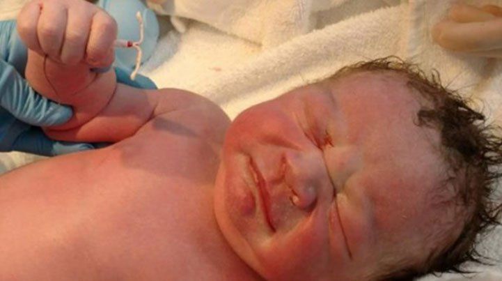 El bebé nació por cesárea. Médicos buscaron el dispositivo durante la operación pero lo hallaron entre sus manos luego de nacer.