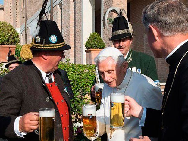 El papa emérito Benedicto XVI celebró el jueves sus 88 años con una celebración en los jardines del Vaticano y una pinta de cerveza.Las fotografías difundidas el jueves por la publicación oficial del Vaticano mostraron al pontífice alemán retirado brindando con un grupo de bávaros en los jardines del Vaticano, acompañado por su hermano mayor, monseñor Georg Ratzinger y su secretario privado.