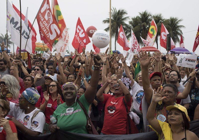 Varios miles de personas se reunieron en la avenida Atlántica, frente a la playa de Copacabana, en una protesta convocada por movimientos sociales y sindicatos y a la que acudieron decenas de representantes del mundo de la cultura para exigir comicios y que se acabe el mandato Temer, envuelto en un grave escándalo de corrupción.