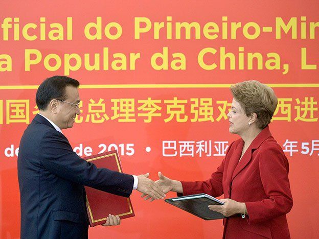 China es el principal socio comercial de Brasil, con un intercambio cercano a los 80.000 millones de dólares en 2014. Las inversiones y proyectos de infraestructura anunciados el martes y que se desarrollarán durante los próximos seis años suman unos 53.000 millones de dólares, dijo Rousseff.Entre los acuerdos se contempla un financiamiento de 5.000 millones de dólares para proyectos de la estatal Petrobras, envuelta en un escándalo de corrupción que le ha cerrado el mercado de crédito.El gobierno de China también acordó comprar 40 aeronaves de la empresa brasileña Embraer y crear un parque industrial automotriz en el estado de Sao Paulo. Muchas de las inversiones anunciadas se llevarán a cabo por medio del Banco Industrial y Comercial de China."Ya alcanzamos muchos frutos y vamos a tener más éxitos", expresó Li.La llegada de capitales chinos no podía ser más oportuna para los brasileños, cuya economía se reducirá en al menos un 1% este año, según los pronósticos. Rousseff anticipó que viajará a China en 2016 invitada por el presidente Xi Jinping.Brasilia es la primera escala de un viaje que llevará al primer ministro chino a Chile, Perú y Colombia y que llega en momentos en que todo el continente está sintiendo el impacto de una menor demanda china de sus materias primas.