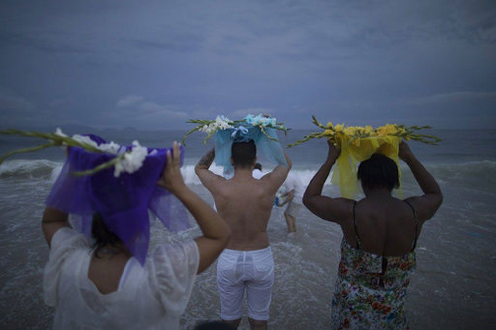 Cientos de creyentes de los cultos candomblé y umbanda se reunieron el viernes en la playa de Copacabana, en Río de Janeiro, para honrar a la diosa del mar Yemayá en un tradicional tributo de Año Nuevo.