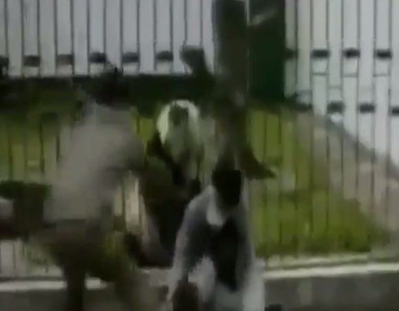 Al parecer este oso panda no estaba de buen humor y decidió atacar a un visitante que se encontraba sentado, justo afuera de su jaula.