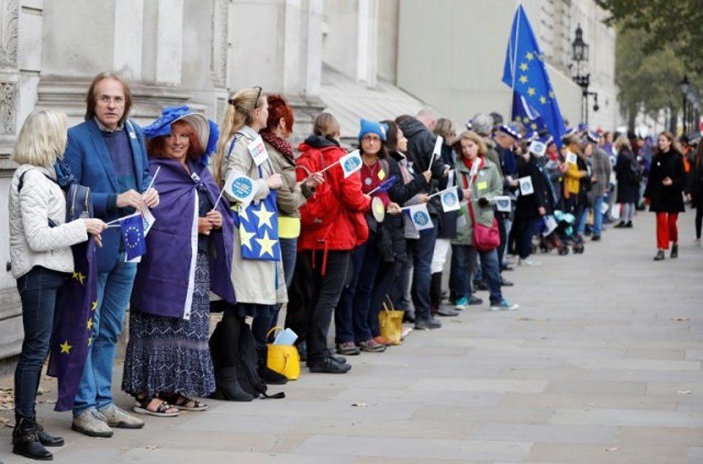 Cientos de ciudadanos europeos formaron una cadena humana frente a las oficinas de la primera ministra británica en Downing Street para exigir que se garantice su estatus en caso de un Brexit sin acuerdo.