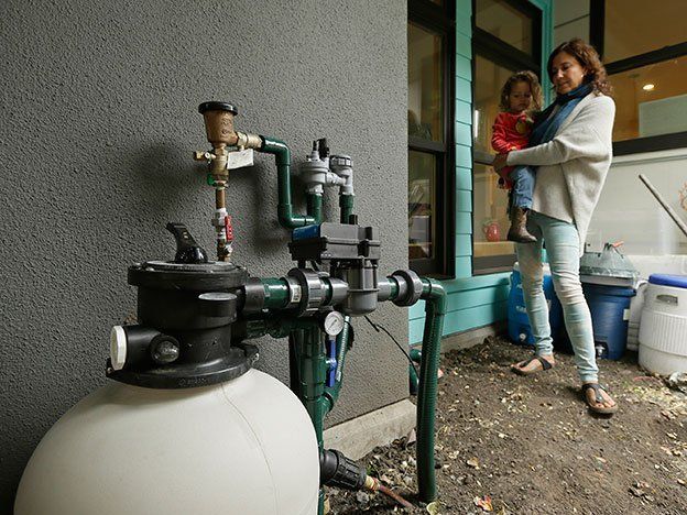 California, al igual que muchos estados, requería que toda el agua utilizada en los hogares fuera desechada junto con las aguas servidas, temiendo riesgos para la salud si se reciclaba el agua incorrectamente.Sin embargo, desde 2010 ha dado marcha atrás y ahora estimula el reciclaje de las aguas grises, que suelen las que fueron usadas con jabón, como la del lavabo, la ducha, la bañera y la lavadora.