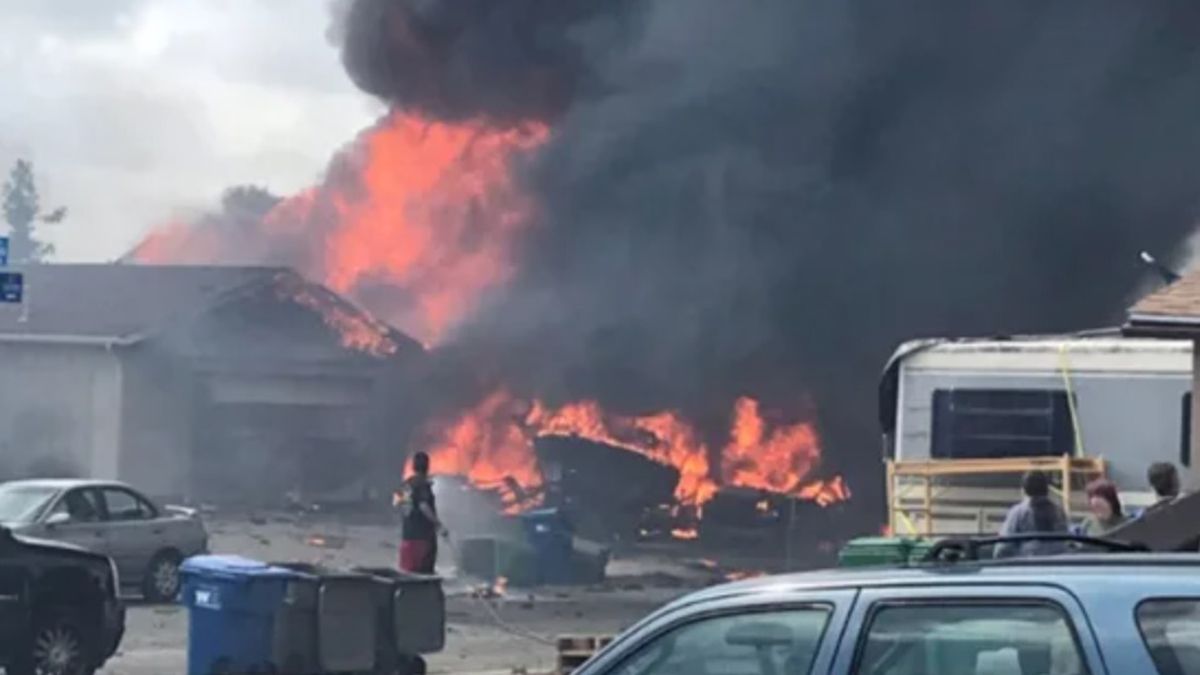 Imágenes del accidente aéreo mostraron a varias unidades de los bomberos apagando las llamas y los restos de dos casas incendiadas en un barrio residencial de Santee, suburbio ubicado unos 32 kilómetros al noroeste del centro de San Diego, en California, informó la agencia de noticias AFP.