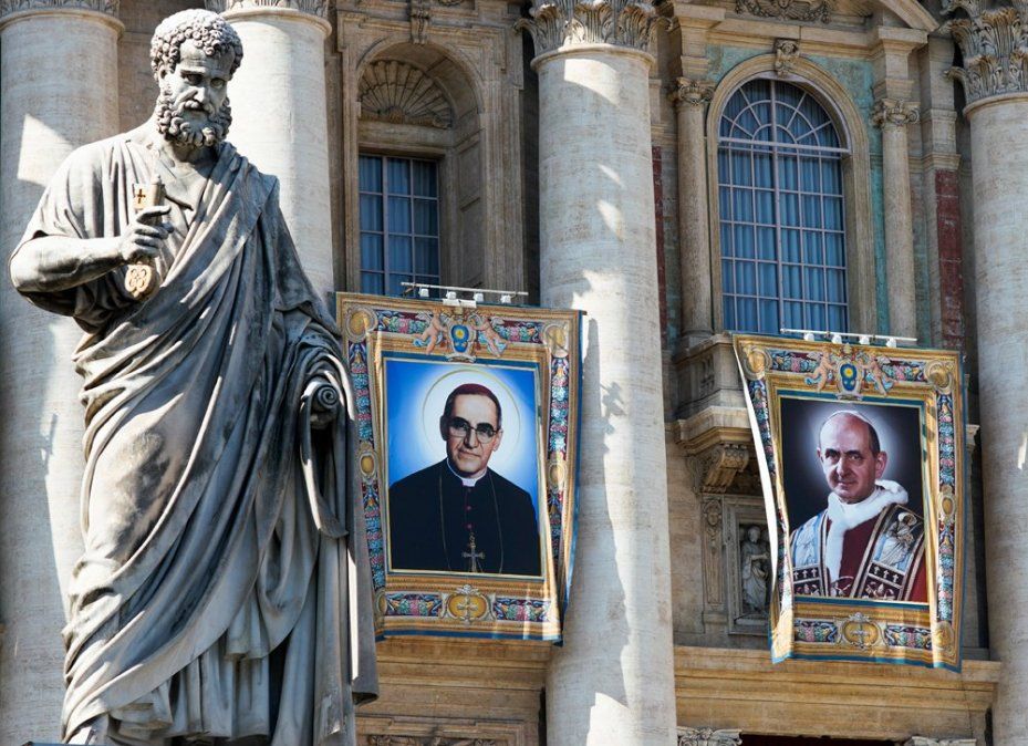 El papa Francisco proclamó santos al asesinado arzobispo salvadoreño Óscar Romero, emblema de una iglesia comprometida con los pobres, y al papa italiano Pablo VI, el pontífice del diálogo, en una multitudinaria misa de canonización celebrada en la plaza de San Pedro del Vaticano.