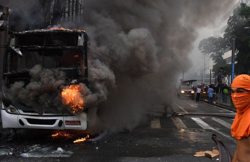 El centro de la ciudad que hace unos meses albergó los Juegos Olímpicos en Brasil se convirtió en teatro de una batalla campal desde que la protesta arrancó a la hora del almuerzo del miércoles.