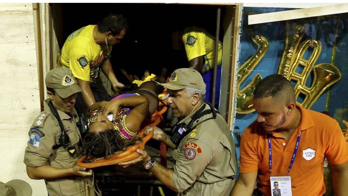 Fuentes médicas informaron que seis personas debieron ser internadas para cuidados más intensivos luego del accidente, ocurrido en el desfile de la escuela de samba Unidos da Tijuca, en la segunda y última noche del carnaval carioca en el sambódromo.