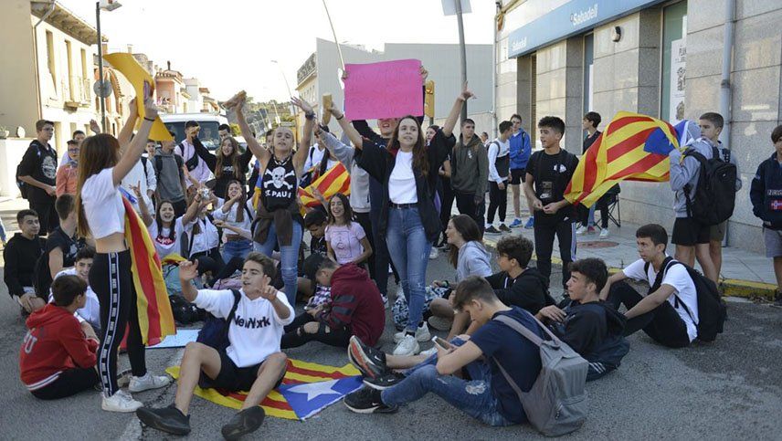 El sindicato de estudiantes independentista informó que los alumnos se están movilizando en toda Cataluña cerca de sus colegios y que seguirán la convocatoria que organice Tsunami Democrático, la plataforma que en una acción sorpresa consiguió parcialmente bloquear el aeropuerto, una de las infraestructuras claves del Estado.