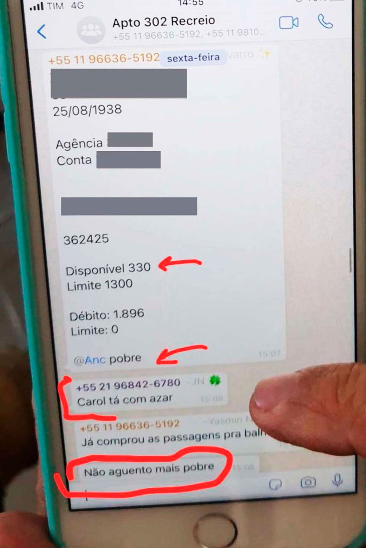 Según los investigadores, las cinco mujeres hasta tenían un chat de Whatsapp titulado “Departamento 302” -el número de la vivienda en la que fueron detenidas- en el que se burlaban de sus víctimas, sobre todo cuando eran personas de escasos recursos, como una mujer de 88 años que tenía apenas 300 reales en el banco.