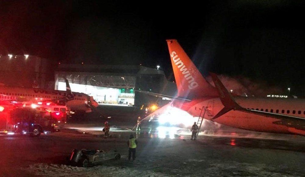 El impacto provocó un pequeño incendió en el avión de Sunwing que obligó a evacuar de emergencia a los pasajeros del Boeing 737-800 de WestJet.