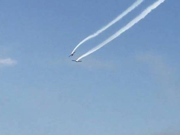 Los visitantes que disfrutaban de las paradisíacas playas de Alba Adriatica, en Italia, pudieron ver en directo cómo dos aviones que participaban de una demostración aérea sobre el mar chocaron y cayeron al agua.Un turista que estaba grabando la demostración aérea registró el momento exacto en el que las dos aeronaves colisionan y caen al mar.