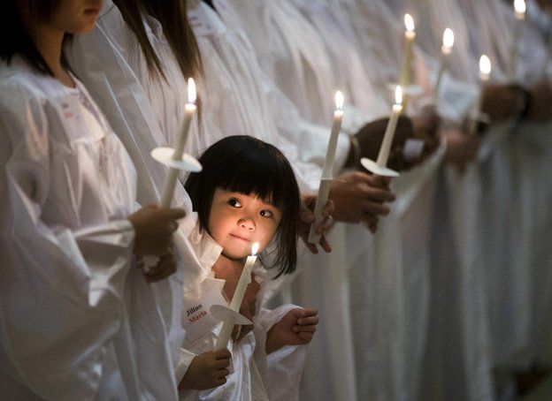 La foto del día.Acto de fe. La pequeña Jillian Nguyen (3) es vietnamita-estadounidense. Aquí participa en su bautismo, en la iglesia católica de Santa Helena (Filadelfia).
