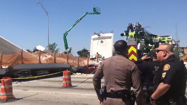 Efectivos trabajan para "asegurar la estructura" mientras prosigue la búsqueda de pacientes, indicaron los Bomberos.Al menos seis personas heridas fueron trasladadas de emergencia al Kendall Regional Medical Center, según el canal Local 10 News.La construcción del puente comenzó en la primavera del año 2017 y se esperaba que concluyera a comienzos de 2019, y este pasado sábado se instaló precisamente la estructura principal sobre los pilares.El puente, de 950 toneladas de peso, 53 metros de longitud y un presupuesto de 14,2 millones de dólares, tenía por objeto conectar unos edificios de apartamentos de estudiantes situados en el suburbio de Sweetwater, en los que viven cerca de 4.000 alumnos, con el campus principal de FIU.La obra del puente, que estaba previsto que pudiese soportar fuertes vientos durante los habituales huracanes que se viven en el sur de Florida, se aceleró después de que el pasado verano muriese atropellada una estudiante al cruzar la calle Ocho.