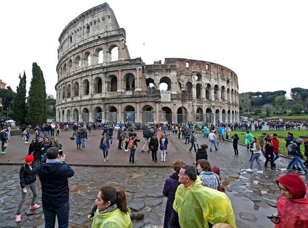 Los turistas se arremolinaban alrededor del Coliseo, a pesar del mal tiempo que hubo en Roma el domingo.
