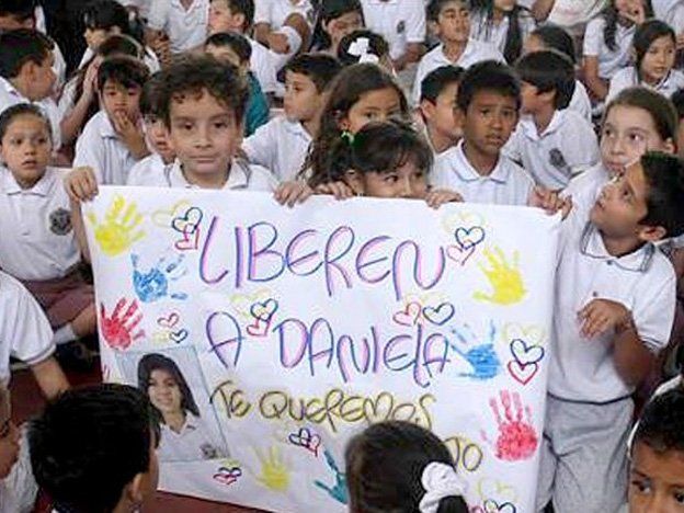 En el colegio Santo Ángel, sus compañeros de quinto grado no paraban de gritar "¡te queremos pronto!..." y "¡no al secuestro!". En algún sector de la escuela, según mostró el local Canal Caracol, se instaló una foto grande de la niña y debajo la frase "estamos contigo".